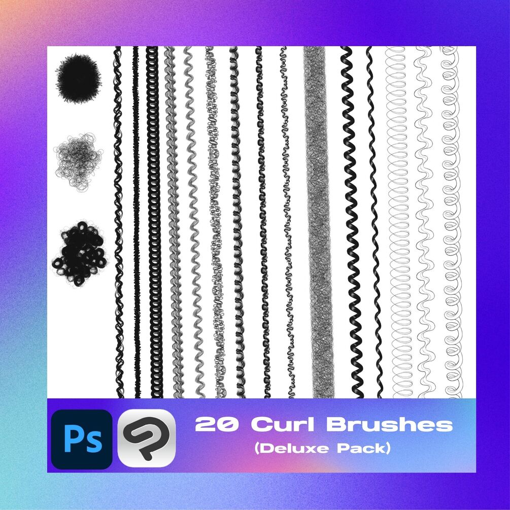 Curl, coil and wave brushes are all made for Clip Studio Paint, Photoshop & Fresco.