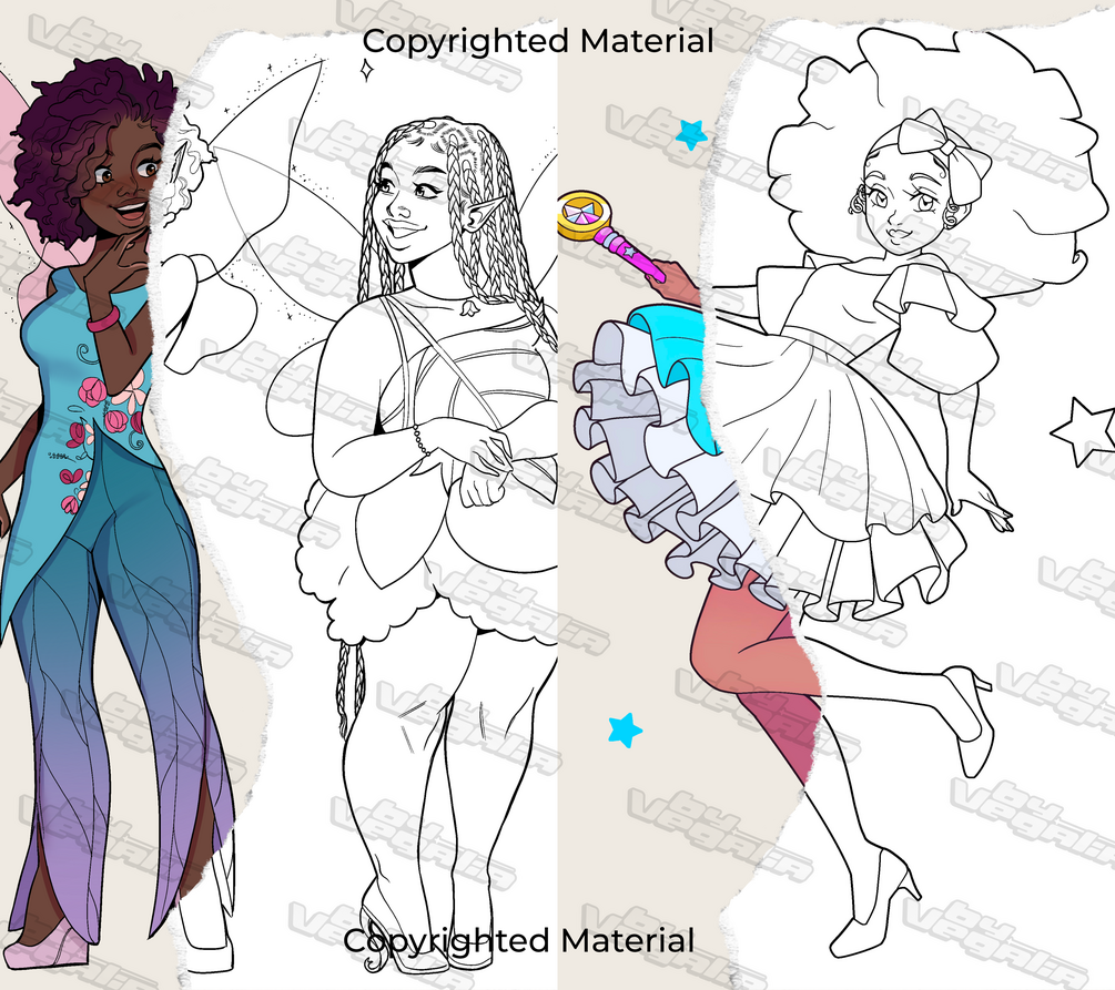 There isn’t enough representation for people of color when it comes to magical/fantasy characters, so we created 35 enchanting pages that celebrate Black centric features. You'll find characters with gorgeous Black hairstyles like braids, locs, afros, curls, & more!