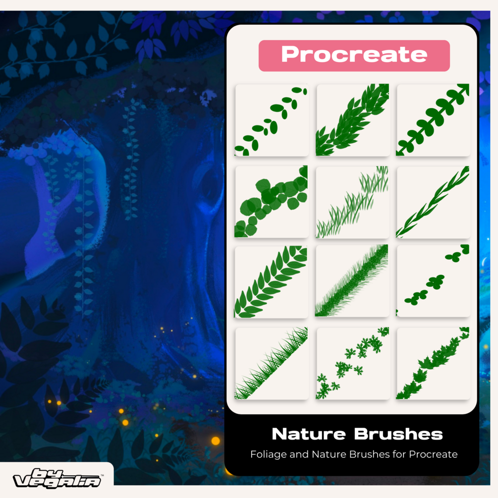 Procreate Nature, Leaf, Foliage, Vine, Bush, Landscape Brushes By. Vegalia